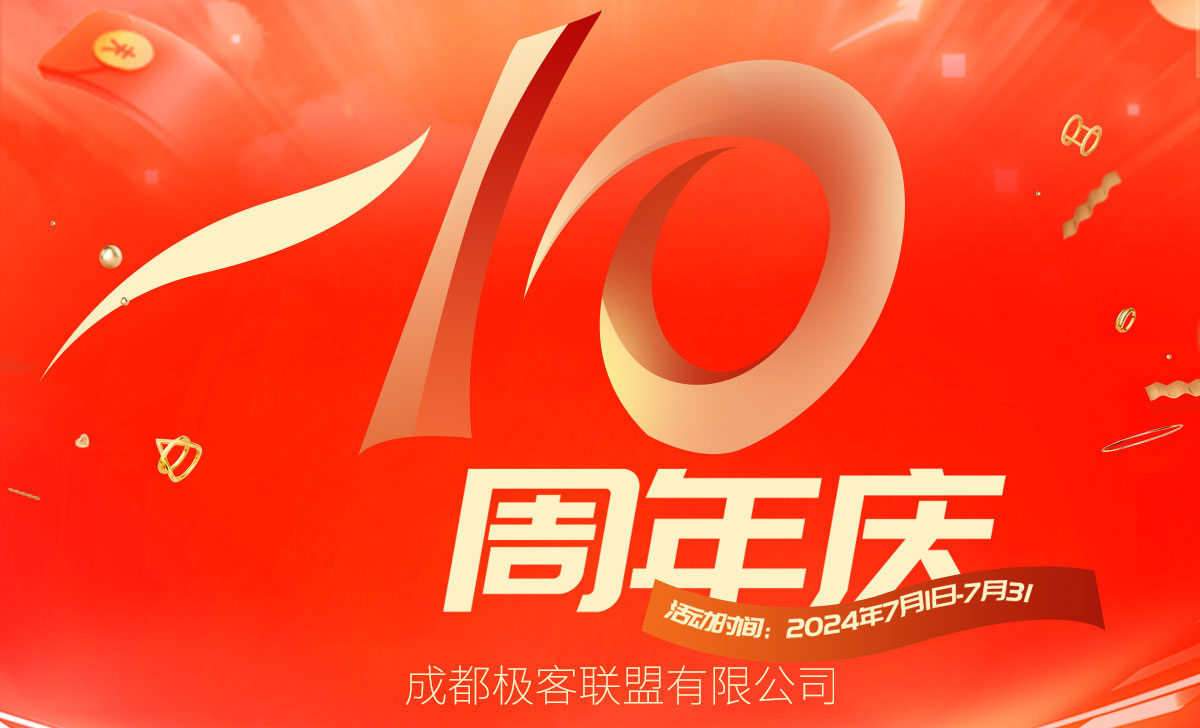 值此9周年之際,極客聯盟特推出五重好禮活動,建站9折,小程序4000+,還送域名服務器,名額有限,先到先得!如果你剛好需要,此時更是劃算!